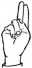 На ћирилици написано ДАВИД МУМАЛО састоји се из 11 слова [?]. Исписано ћириличном једноручном азбуком за глувонеме: